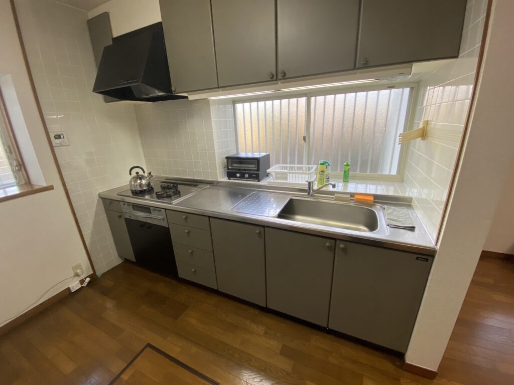 - ガスコンロ、電子レンジ、炊飯器、冷蔵庫、オーブントースター、煮物用鍋(土鍋、すきやき用鍋はありません)、やかん、ボウル、箸、大小皿、フライ返し、グラス、スプーン、フライパン、まな板、包丁、きゅうす、おたま、茶碗、おわん、ざる、コップ