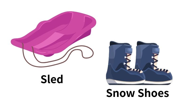 • Sled & snow shoes included